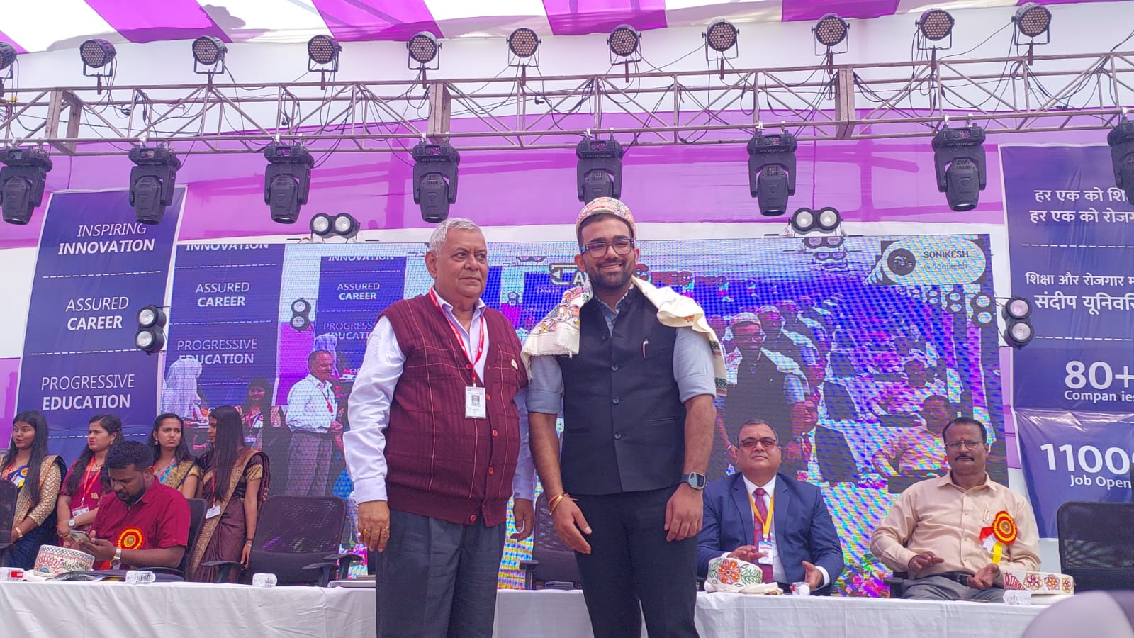 तीन दिवसीय रोजगार मेला में करीब सौ से अधिक अलग अलग कंपनियों ने अपना स्टोल लगा, रोजगार मेला में करीब 11000 से अधिक युवा पहुंचे,और रोजगार मेला में लगे अलग अलग कंपनियों के स्टोल पर जाकर अपना रजिस्ट्रेशन करवाया। वही रोजगार मेला में कंपनी एचडीएफसी, रिलायंस, उत्कर्ष बैक,एचपी,जैसी देश कि नामचीन 100 से अधिक कम्पनियों के एचआर ने अपना योगदान देकर विश्वविद्यालय के छात्रों और पूरे प्रदेश से आये युवाओं का साक्षात्कार कर चयन किया। संदीप विश्वविद्यालय परिसर में अयोजित रोजगार मेला में सम्मिलित होने आए छात्र और छात्राओं में काफी खुशी का माहौल देखा गया। विश्वविद्यालय के कुलपति डाँ.समीर कुमार वर्मा जी ने विश्वविद्यालय के छात्रों के साथ ही रोजगार मेला मे आये युवाओं को अपनी शुभकामनाएं दी। विश्वविद्यालय के डायरेक्टर श्री आर्यन झा जी ने पाग दोपटा एवं पौधा देकर सम्मानित किया ।विश्वविद्यालय के छात्राओं द्वारा अतिथियों का स्वागत स्वागतगान के साथ किया !