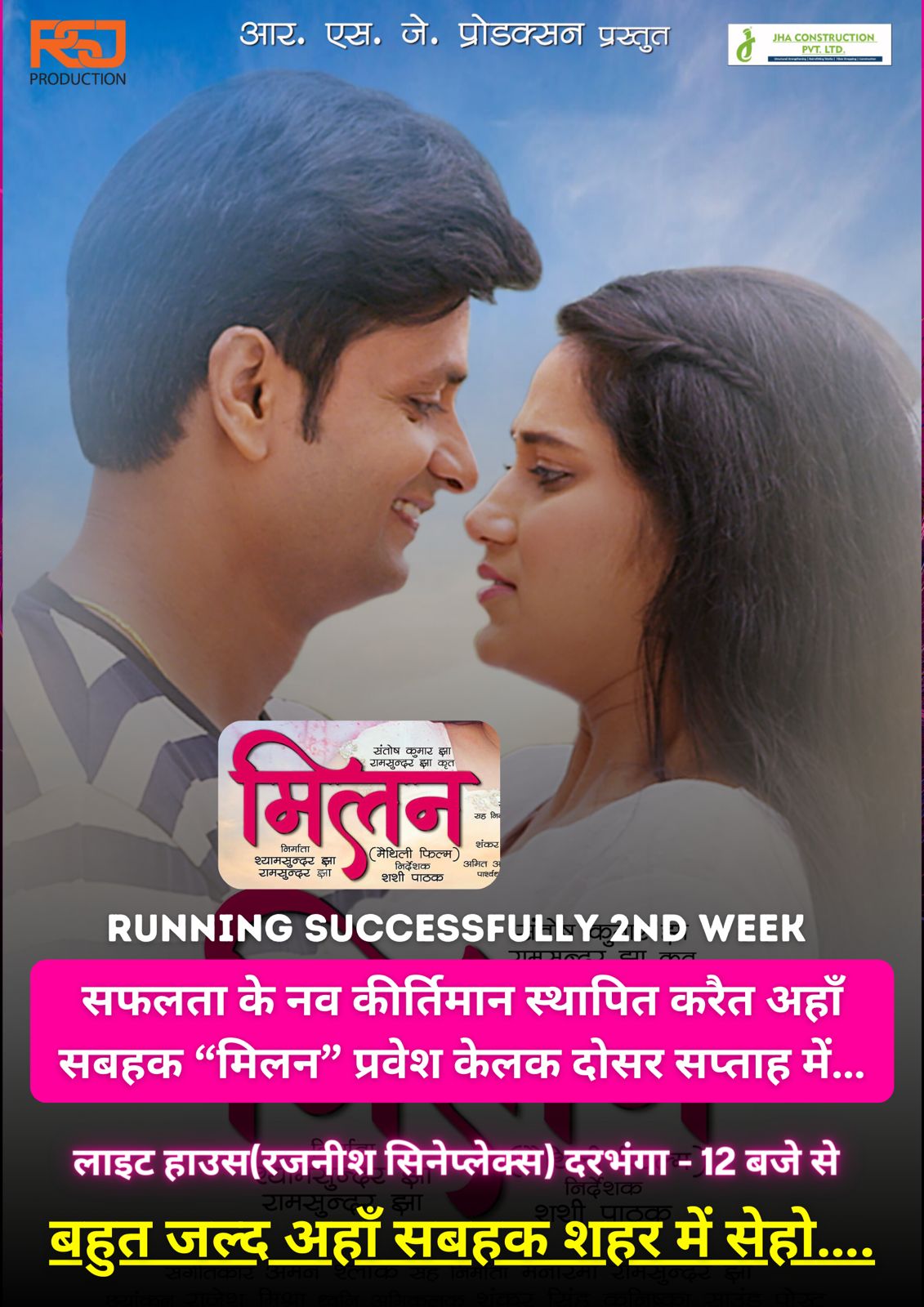 दरभंगा में 22 मार्च से मिलन की धूम पूरे मिथिला में उत्सव का रूप ले लिया माँ बहन पीली सारी पहनकर सिनेमा देखने आए । पहली बार मैथिली सिनेमा मिलन सफलता के नए कीर्तिमान स्थापित की ।
