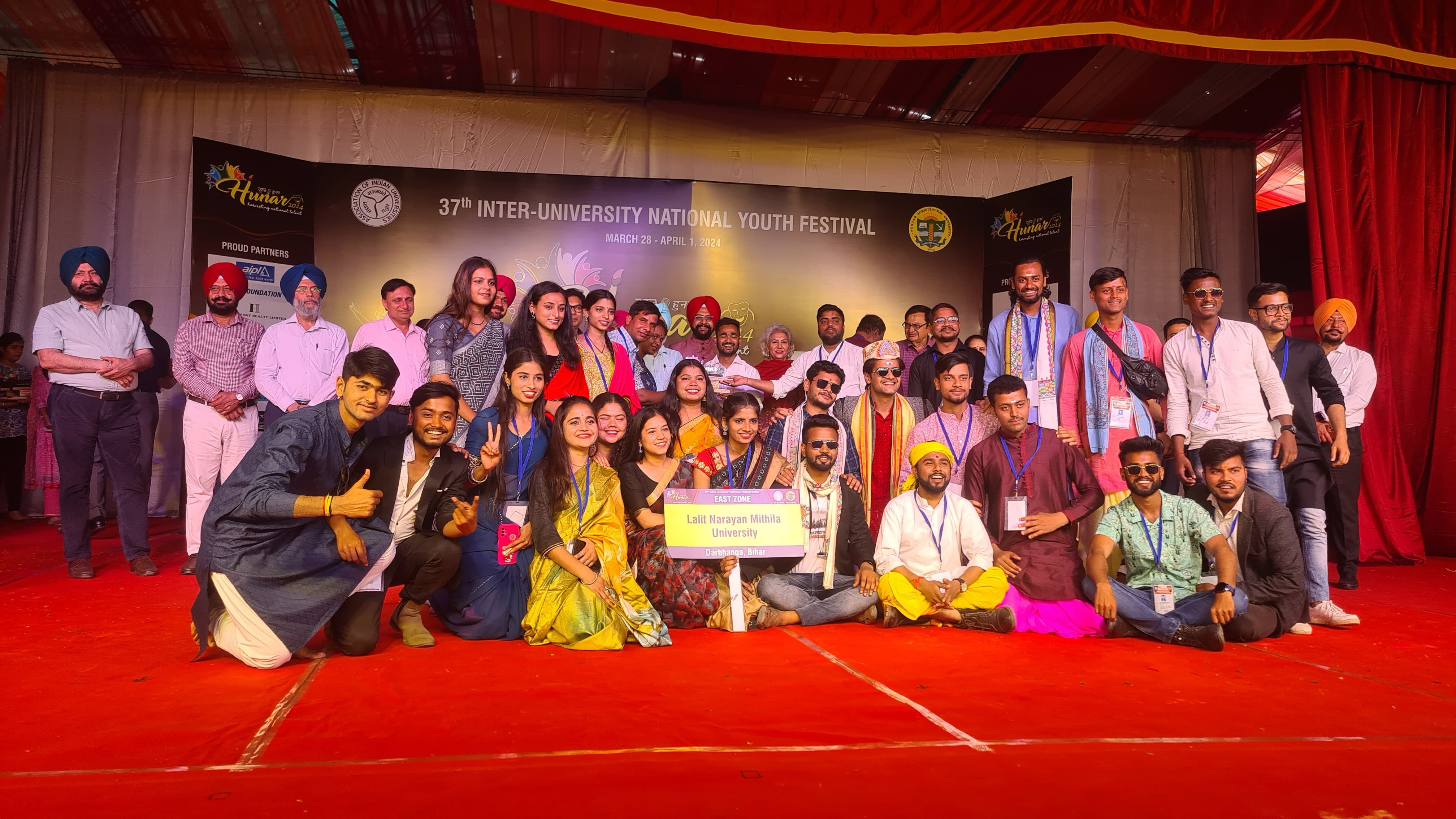 भारतीय विश्वविद्यालय संघ नई दिल्ली एवं पंजाब कृषि विश्वविद्यालय के संयुक्त तत्वावधान में आयोजित 37वीं अखिल भारतीय अंतर विश्वविद्यालय युवा महोत्सव में ललित नारायण मिथिला विश्वविद्यालय दरभंगा की युवा महोत्सव की टोली ने अब तक का अपना श्रेष्ठ प्रदर्शन किया प्रतियोगिता के टोली 15 विधाओं में पुरुस्कृत हुई। बता दें कि यह प्रतियोगिता पंजाब कृषि विश्वविद्यालय लुधियाना पंजाब में 28 मार्च से 01 अप्रैल तक आयोजित की गई थी। ललित नारायण मिथिला विश्वविद्यालय दरभंगा की युवा महोत्सव की टोली में कुल 32 प्रतिभागी 08 संगत कलाकार तथा 2 टोली प्रबंधक के साथ इस प्रतियोगिता में भाग लिया था। विश्वविद्यालय मिडिया संयोजक डॉ0 हरे कृष्ण सिंह ने बताया कि उक्त प्रतियोगिता में विश्वविद्यालय की टोली ने सुगम संगीत विधा में द्वितीय स्थान, शास्त्रीय गायन में तृतीय, नृत्य विधा के शास्त्रीय नृत्य में तृतीय स्थान नाट्य विधा के एकांकी नाटक में तृतीय स्थान प्रहसन में द्वितीय तथा मूक नाटक में प्रथम स्थान, साहित्यक विधा के वक्तृता प्रतियोगिता में तृतीय ललित कला विधा के स्पॉट फोटोग्राफी में प्रथम स्थान, मेहंदी विधा में तृतीय स्थान, मूर्तिकला में तृतीय स्थान एवं सांस्कृतिक शोभा यात्रा में तृतीय स्थान प्राप्त किया। साथ ही नाट्य विधा की ओवरआल उप-विजेता विश्वविद्यालय की टोली बनी। ज्ञात हो कि ललित नारायण मिथिला विश्वविद्यालय दरभंगा की इससे पूर्व इसी टोली ने बेरहमपुर विश्वविद्यालय द्वारा आयोजित 37 वीं पूर्वी क्षेत्र अंतर विश्वविद्यालय युवा महोत्सव में उप-विजेता का स्थान प्राप्त किया था तथा इसी प्रतियोगिता में डांस विधा का उपविजेता संगीत विधा का द्वितीय उप विजेता और नाट्य कला विधा में यह टीम ओवरऑल विजेता भी रही है। ललित नारायण मिथिला विश्वविद्यालय का चयन अखिल भारतीय अंतर विश्वविद्यालय प्रतियोगिता की 14 प्रतियोगिताओं हेतु किया गया था।