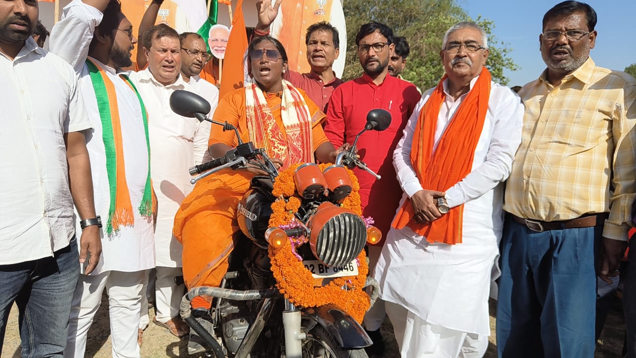यह कार्यक्रम :भाजयुमों जिला अध्यक्ष अशोक कुशवाहा के नेतृत्व एवं जिला अध्यक्ष शंकर झा के उपस्थिति में हुई लक्ष्मी मंडा पूरे देश की यात्रा करके आई दिल्ली में इनका समापन होगा अभी तक 370 क्षेत्रों ष की यात्रा कर चुकी है मौके पर विधायक श्री विनोद नारायण झा प्रभारी रामकुमार राय जिला महामंत्री प्रमोद सिंह जिला मीडिया प्रभारी मनोज कुमार मुन्ना आईटीसेल जिला संयोजक सह किसान मोर्चा जिला महामंत्री राजीव झा जिला पार्षद विनोद प्रसाद लोकसभा संयोजक प्रशांत ठाकुर पंकज सिंह राठौड़ राहुल राज रामबालक चौधरी नगर अध्यक्ष सुबोध चौधरी युवा मोर्चा जिला महामंत्री मुकेश यादव मनोहर झा राजा सिंह राठौड़ विकास दुबे ओमप्रकाश नवीन सिंह चंदन पासवान रवि कुमार दुबे आशुतोष झा गौरव कुमार चिंटू सिंह सहित कई लोग शामिल थे। भाजपा युवा मोर्चा जिला अध्यक्ष अशोक कुशवाहा ने कहा कि आदरणीय प्रधानमंत्री जी को तीसरी बार प्रधानमंत्री बनाने के संकल्प को लेकर तमिलनाडु से 21 हज़ार किलोमीटर की बाइक यात्रा पर निकली बुलेट रानी के नाम से प्रसिद्ध माँ राजलक्ष्मी जी का आगमन मधुबनी में हुआ। भारतीय जनता युवा मोर्चा के सभी पदाधिकारियों ने माँ राजलक्ष्मी जी का गर्मजोशी के साथ स्वागत एवं अभिनंदन किया। राजलक्ष्मी ने वोट फॉर मोदी की अपील की।