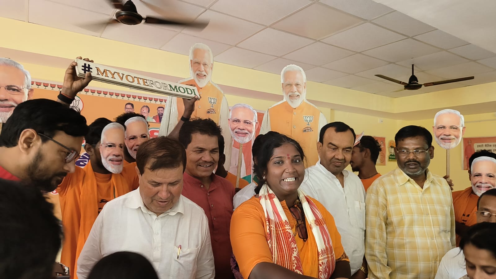 भारतीय जनता पार्टी कार्यालय में अपने यात्रा के 51 वां दिन मां लक्ष्मी मंडा वोट फॉर नेशन वोट फॉर मोदी के नारों के साथ जब भाजपा कार्यालय निधि चौक मधुबनी पहुंची तोजिलाध्यक्ष शंकर झा बेनीपट्टी विधायक विनोद नारायण झा भाजयुमों जिलाध्यक्ष अशोक कुशवाहा के साथ भाजपाईयों ने उनका जोरदार स्वागत किया !