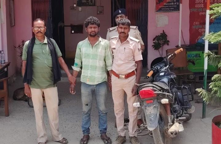 घनश्यामपुर थाना पुलिस ने चोरी की बाइक के साथ एक बाईक चोरों को गिरफ्तार किया है चोर सिमरी गांव के रहने वाले बताए जा रहे है । इनमे सदरे आलम पिता उसमान नदाव शामिल है ।