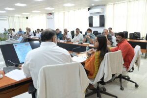 डी.आर.एम कार्यालय में सांसद श्रीमति शाम्भवी चौधरी बैठक करते हुए