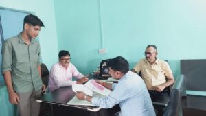 प्लस टू मनमोहन उत्क्रमित विद्यालय रामपट्टी में नामांकन की प्रकिया करते शिक्षक और छात्र