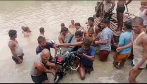 DARBHANGA: – बिहार के दरभंगा जिला के कुशेश्वरस्थान पूर्वी प्रखंड के कोसी उपधारा में गोलमा डीह से गोलमा घाट जाने के दौरान नाव हादसा हो गया। जिस वक्त यह हादसा हुआ, उस वक्त नाव पर 8 लोग सहित 2 बाइक था। हादसे के बाद 7 लोग किसी प्रकार तैर कर बाहर निकल गए। लेकिन 23 वर्षीय युवक राजा अब तक लापता है। वही स्थानीय गोताखोर की मदद से बाइक को पानी से निकाला गया। लेकिन, युवक अभी तक पानी में लापता है। गोताखोर की टीम युवक की तलाश में जुटे हैं।