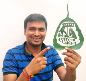 मोतीहारी:- देशभर में आज रक्षाबंधन और सावन मास की अंतिम सोमवारी की धूम है तो वही दुसरी ओर बिहार के अंतर्राष्ट्रीय रेत कलाकार (Sand Artist) मधुरेंद्र कुमार ने अपनी अनूठी कलाकृति (leaf Art) बनाकर भाई बहन के अटूट प्रेम का संदेश दिया है। सोमवार को सैंड आर्टिस्ट मधुरेंद्र ने अपनी कलाकृति में 5 घंटों के कठीन परिश्रम कर बाद दुनियां के सबसे छोटी 5 सेमी. वाली पीपल के हरे पत्तों पर “हैप्पी रक्षाबंधन” (Happy Raksha Bandhan) लिखकर देशवासियों को शुभकामनाएं भी दी हैं।