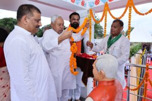 कार्यक्रम में पूर्व मंत्री स्व. हरि प्रसाद साह की मूर्ति का अनावरण कर मुख्यमंत्री ने उन्हें श्रद्धांजलि अर्पित की।