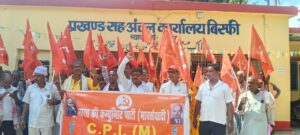 माकपा नेताओं ने विस्फी प्रखंड सह अंचल कार्यालय पर दिया धरना