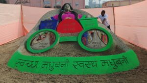 मधुबनी महोत्सव में सैंड आर्टिस्ट मधुरेंद्र की कलाकृति ने दिया स्वच्छता का अनोखा संदेश