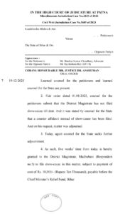 पटना हाईकोर्ट का सख्त रुख: मधुबनी डीएम पर ₹10 हजार का जुर्माना, 5 हफ्ते में शो-कॉज दाखिल करने का अंतिम मौका